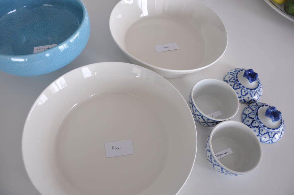 A week before you can start by cleaning any crystal, china and silverware that you will be using. You can also check your tablecloths and linens if they need to be washed, dry cleaned or ironed. Find all your plates, tableware, serving dishes and cookware. Allocate a serving dish for each menu item and label it with a Post-it note. You cannot imagine how helpful is this tip. Trust me.