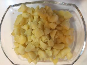 This quick n’ easy, light, carb dish can be eaten alone or served as a side dish especially with pork schnitzel. Where possible use baby potatoes but small sized will do too.