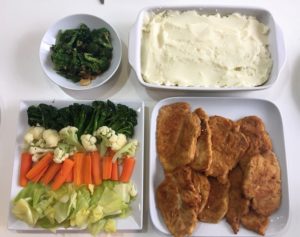 o Pork or chicken escallops with mash, broccoli or steamed vegetable variety