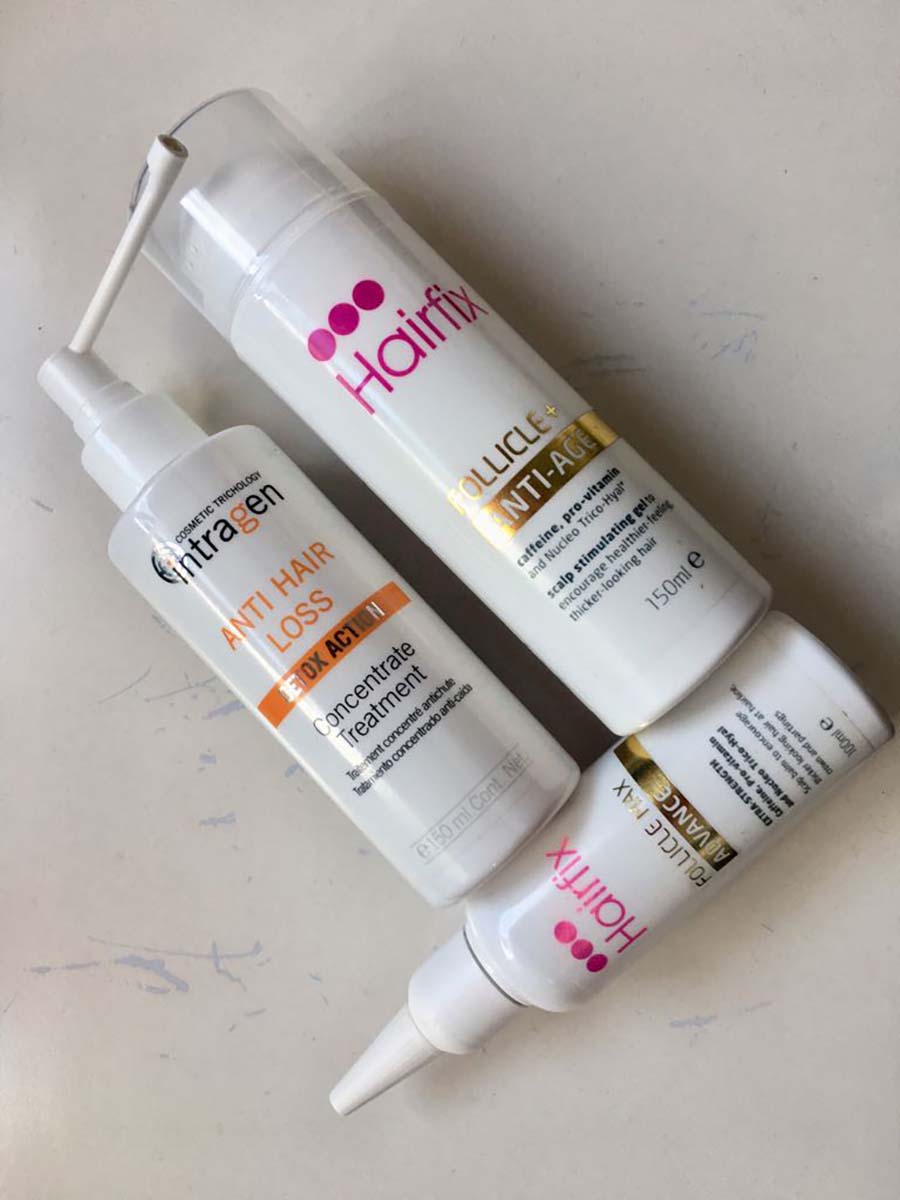 There are topical treatments available like Minoxidil and caffeine products. I am trying a new product on the market at the moment from Hair Fix which is their new Hairfix Follicle + Anti-Age is their latest and most advanced formula for thinning, ageing and greying hair. It is a scalp and hair follicle treatment that you use two to three times per week.  I will come back to you after Christmas once I have given this product a good road test.
